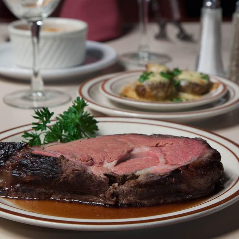Great food, service and ambiance. I had the prime rib. It was very good. It was tender and served with a mushroom gravy/sauce. My husband had a porter house steak and it was great as well. The salads were fresh and served with homemade dressing. I had the blue cheese with crumbles and it was very good and not overpowering. Glad we finally stopped in as we enjoyed our meal and experience.
